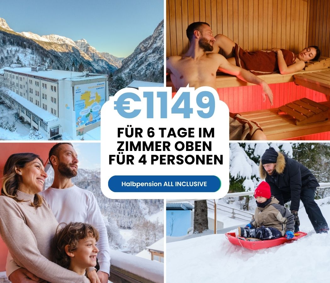 Melden Sie sich an6-tägiges Angebot mit Skipass für unter 18-Jährige inklusive, mit Halbpension All-Inclusive, vom 20. bis 28. Februar, 1149 € für bis zu 4 Personen im Zimmer