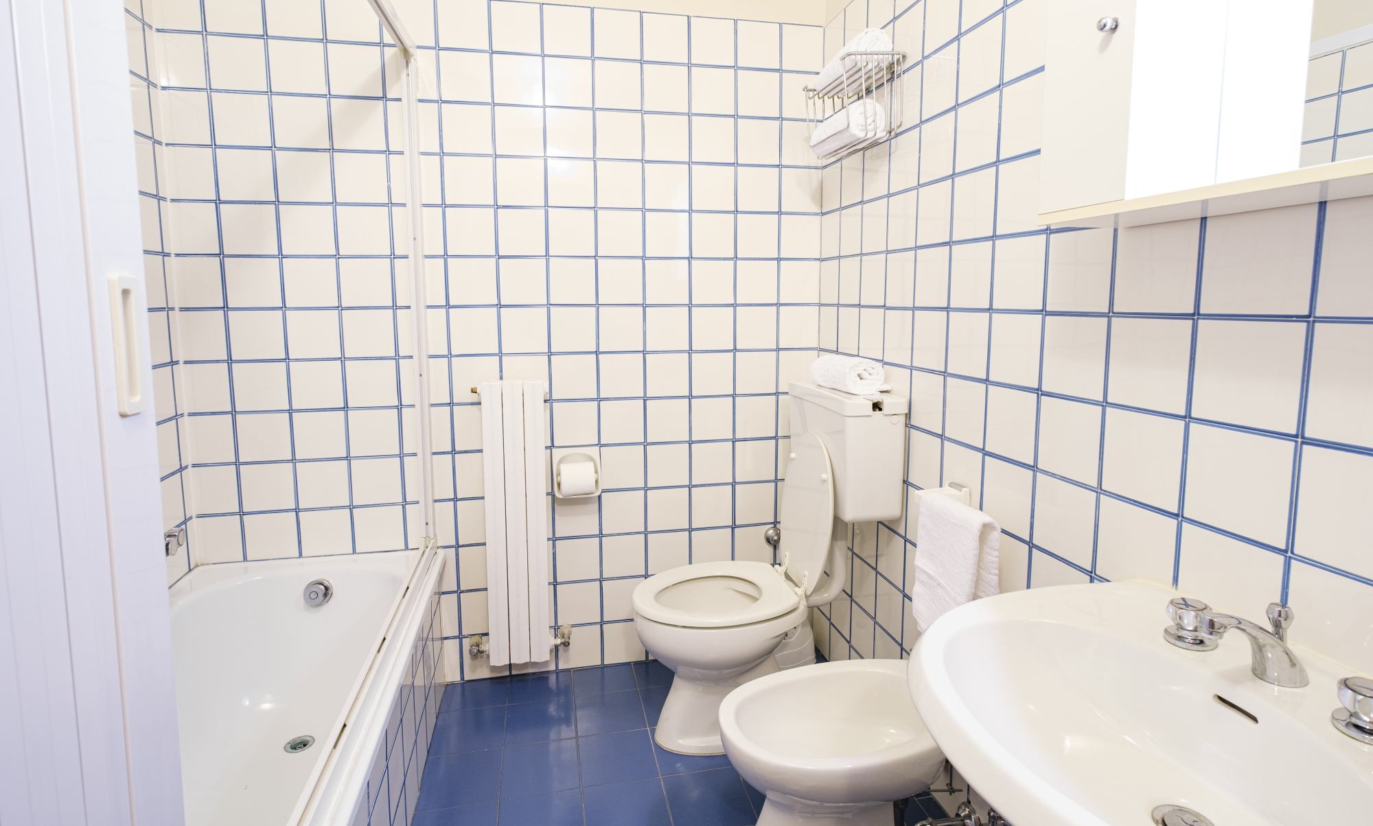 All bathrooms are equipped with a shower enclosure, a complete set of body towels, a hairdryer, and a complimentary beauty kit.