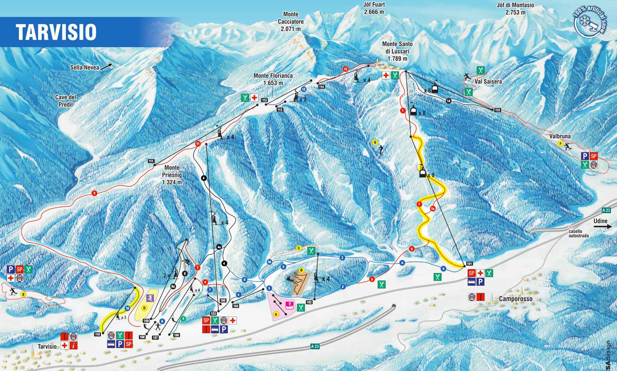 Ti ricordiamo che nelle nostre offerte è incluso il transfer gratuito da Sella Nevea a Tarvisio, distante solo 20 chilometri. Questo vi permetterà di sciare in un secondo comprensorio utilizzando lo stesso skipass di Sella Nevea.